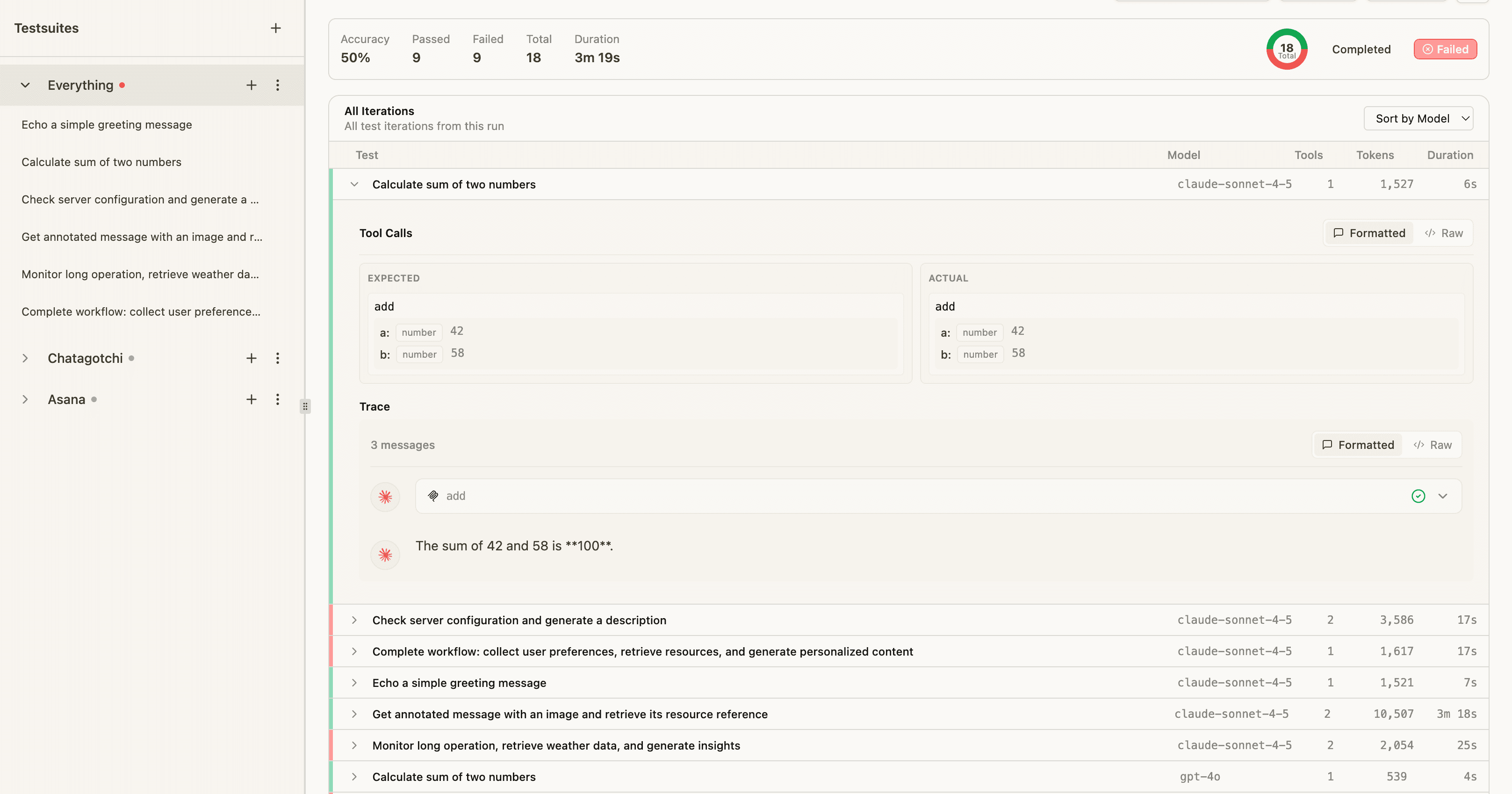 In addition to tool-selection accuracy, evals track token usage, run duration estimates, and performance across multiple LLMs. Since MCP servers are used by diverse clients, it's crucial to understand how different models behave with your tools.