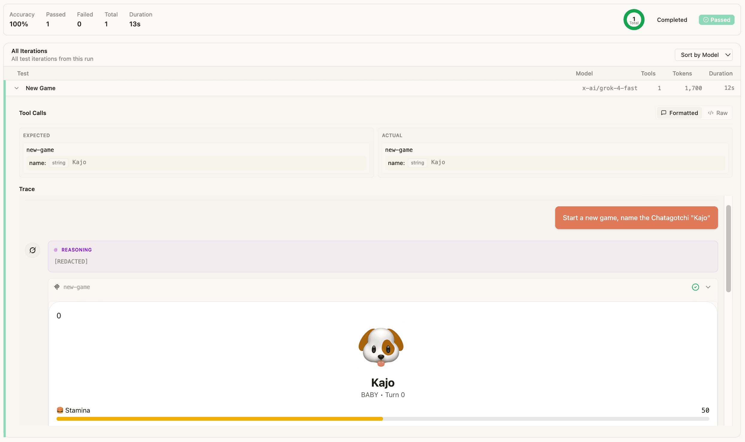 Accuracy measures the overall health of your MCP server's ergonomics. Measures what percentage of all runs passed with expected tool calls.